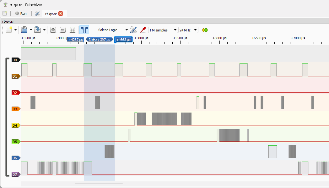 Logic analyzer trace after pressing the button (QK kernel)